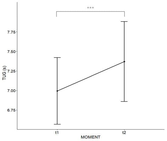 Background/Objectives: Falls are a major global issue for older adults, and emotional stress may increase the risk due to its effects on postural control and balance. However, the immediate effects of a stressful stimulus on objective measures of balance and fall risk are unknown. The study aims to explore differences in older adults’ performance on the Timed Up and Go (TUG) test before and after such exposure. Methods: In this cross-sectional study, 31 older adults (71.6 ± 4.98 years) were exposed to an emotionally stressful stimulus using high-arousal images from the International Affective Picture System. Participants performed the TUG before (t1) and after (t2) exposure as the primary outcome measure. To assess the physiological and psychological impact of the stressful stimulus, heart rate variability (HRV) was recorded before and during image viewing. A visual analogue scale (VAS) of unease was completed both before and after the stimulus. Results: During the stressful stimulus, the HRV high-frequency (HF) band decreased significantly (p = 0.001), while the low-frequency (LF) band (p = 0.002) and the LF/HF ratio (p = 0.004) showed a significant increase. Similarly, after stressful stimulus, VAS scores demonstrated a statistically significant increase (p < 0.001). The time to complete the TUG showed a statistically significant increase at t2 (p < 0.001). Conclusions: The stressful stimulus triggered both physiological and subjective stress responses. Subsequently, TUG test performance declined (increased duration), suggesting that emotionally stressful stimuli could deteriorate functional balance performance in older adults, potentially increasing fall risk.