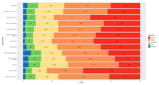 Background: Recently introduced nicotine pouches (NPs) are smokeless nicotine products. They are held between the lips and gums for 30 min to absorb nicotine into the bloodstream through the oral mucosa. Attractiveness may increase nicotine use, especially among young people and teens. The objective of this study is to investigate the health issues and psychological effects associated with nicotine pouch use among individuals in Saudi Arabia. Methods: A cross-sectional online survey using Google Forms. It was conducted between 13 February and 4 November 2025, in the Riyadh province of Saudi Arabia, restricted to users of nicotine pouches willing to answer a questionnaire on the occasion of buying them (at regional tobacco stores/supermarkets) or online via WhatsApp or the Telegram platform. Statistical analysis was conducted using SPSS Version 27, with a p < 0.05 indicating significance. Results: The current study included data of 489 participants, with a total of 395 participants using nicotine pouches. The most commonly reported symptoms were difficulty breathing and shortness of breath (both 40.5%), changes in taste or smell (36.7%), headache and stomach ulcers (33.4% each), and rapid or irregular heartbeat (28.4%). Most common psychological symptoms at any severity level (slightly to extremely) were appetite changes (78.7%), difficulty concentrating or focusing (75.4%), difficulty sleeping (74.9%), and increased anxiety or irritability (73.4%). Depression (72.2%), anger management (71.1%), and stress (70.4%) were also common. Regression analyses revealed that educational attainment was a significant predictor of both physical and psychological health outcomes. Conclusions: The findings show the most common physical symptoms were difficulty breathing and shortness of breath, followed by taste or smell changes, headaches, stomach ulcers, and rapid or irregular heartbeat. Appetite changes, concentration issues, sleep disturbances, and anxiety or irritability were common across all severity levels. Depression, anger issues, and stress were common.