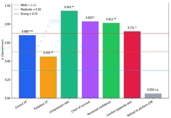 Background: Early cardiopulmonary resuscitation (CPR) and timely use of automated external defibrillators (AEDs) are critical determinants of survival following out-of-hospital cardiac arrest (OHCA). University students enrolled in healthcare degree programs represent a strategic target population for the dissemination of basic life support and