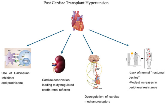 Heart transplantation is the gold standard in patients with end stage heart failure, offering vastly improved survival, mortality and quality of life. However, hypertension occurring after cardiac transplantation is a serious issue, with the incidence ranging from 50 to 80% of patients. The