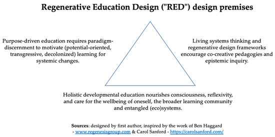 This article explores applying regenerative development approaches in an Amsterdam-based university course on “Education and International Development” during the COVID-19 pandemic. A transnational team examined possibilities and challenges in virtual/hybrid learning, focusing on co-creative pedagogies to enhance engagement and mutual learning. The study uses auto-ethnographic narratives, reflection questions, and student insights to reflect on critical, transgressive, decolonising, and contemplative pedagogies. Findings highlight three design premises for regenerative approaches to higher education: paradigm shifting for purpose-driven education; living system thinking for co-creative pedagogy; and holistic developmental learning for being-education. This research contributes to innovative educational practices in international fields of study and invites readers in a reflective reading experience.