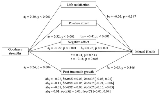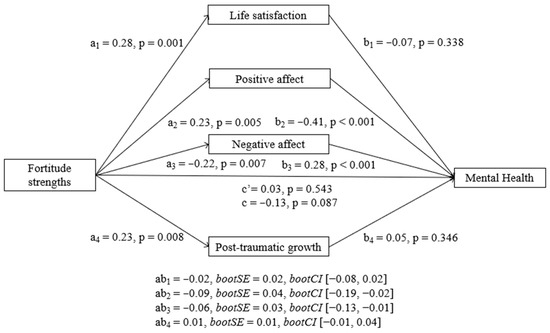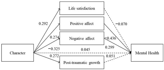 The COVID-19 pandemic has posed significant challenges to mental health worldwide, raising the need to identify stable psychological resources that promote sustainable well-being. This longitudinal study examined whether character strengths predict well-being, post-traumatic growth, and mental health over a 13-month period. Participants (N = 146) completed online measures of character strengths, mental health, life satisfaction, affect, and post-traumatic growth at two time points. First, we tested whether a single general factor of character predicted later mental health and whether life satisfaction, affect, and post-traumatic growth mediated this relationship. Then, we repeated this model but with five different character strengths factors as predictors. Results showed that character predicted all mediators and mental health over time, but only the affective components of well-being mediated the relationship between character and mental health, especially positive affect. When looking at the five character strengths factors, although the majority predicted higher well-being and better mental health over time, goodness and interpersonal and fortitude strengths yielded the strongest effects. These findings suggest that character strengths contribute to sustainable well-being by fostering affective resilience in the face of adversity, aligning with the goals of Sustainable Development Goal 3 (Good Health and Well-being).