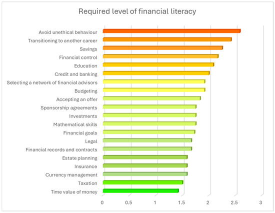 The importance of financial literacy for professional athletes is undeniable. This study aimed to build on previous research by identifying the financial literacy content areas that require the highest level of competence for professional athletes competing in team sports. To address this, 12