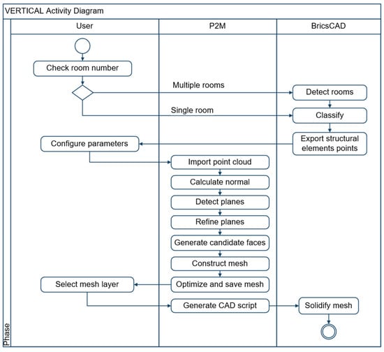 Accurate volumetric modeling of indoor spaces is essential for emerging 3D cadastral systems, yet existing workflows often rely on manual intervention or produce surface-only models, limiting precision and scalability. This study proposes and validates an integrated, largely automated workflow (named VERTICAL) that converts classified indoor point clouds into topologically consistent 3D solids served as materials for land surveyor’s cadastral analysis. The approach sequentially combines RANSAC-based plane detection, polygonal mesh reconstruction, mesh optimization stage that merges coplanar faces, repairs non-manifold edges, and regularizes boundaries and planar faces prior to CAD-based solid generation, ensuring closed and geometrically valid solids. These modules are linked through a modular prototype (called P2M) with a web-based interface and parameterized batch processing. The workflow was tested on two condominium datasets representing a range of spatial complexities, from simple orthogonal rooms to irregular interiors with multiple ceiling levels, sloped roofs, and internal columns. Qualitative evaluation ensured visual plausibility, while quantitative assessment against survey-grade reference models measured geometric fidelity. Across eight representative rooms, models meeting qualitative criteria achieved accuracies exceeding 97% for key metrics including surface area, volume, and ceiling geometry, with a height RMSE around 0.01 m. Compared with existing automated modeling solutions, the proposed workflow has the ability of dealing with complex geometries and has comparable accuracy results. These results demonstrate the workflow’s capability to produce topologically consistent solids with high geometric accuracy, supporting both boundary delineation and volume calculation. The modular, interoperable design enables integration with CAD environments, offering a practical pathway toward an automated and reliable core of 3D modeling for cadastre applications.