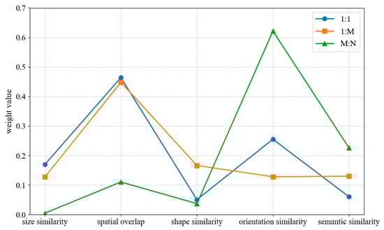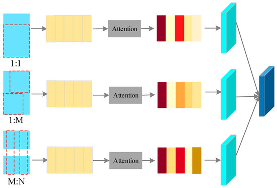 The cross-scale fusion and consistent representation of cross-source heterogeneous vector polygon data are fundamental tasks in the field of GIS, and they play an important role in areas such as the refined management of natural resources, territorial spatial planning, and the urban emergency response. However, the existing methods suffer from two key limitations: the insufficient utilization of semantic information, especially non-standardized attributes, and the lack of differentiated modeling for 1:1, 1:M, and M:N matching relationships. To address these issues, this study proposes a geometric–attribute collaborative matching method for multi-scale polygonal entities. First, matching relationships are classified into 1:1, 1:M, and M:N based on the intersection of polygons. Second, geometric similarities including spatial overlap, size, shape, and orientation are computed for each relationship type. Third, semantic similarity is enhanced by fine-tuning the pre-trained Sentence-BERT model, which effectively captures the complex semantic information from non-standardized descriptions. Finally, a three-branch attention network is constructed to specifically handle the three matching relationships, with adaptive feature weighting via attention mechanisms. The experimental results on datasets from Tunxi District, Huangshan City, China show that the proposed method outperforms the existing approaches including geometry–attribute fusion and BPNNs in precision, recall, and F1-score, with improvements of 3.38%, 1.32%, and 2.41% compared to the geometry–attribute method, and 2.91%, 0.27%, and 1.66% compared to BPNNs, respectively. A generalization experiment on Hefei City data further validates its robustness. This method effectively enhances the accuracy and adaptability of multi-scale polygonal entity matching, providing a valuable tool for multi-source GIS database integration.