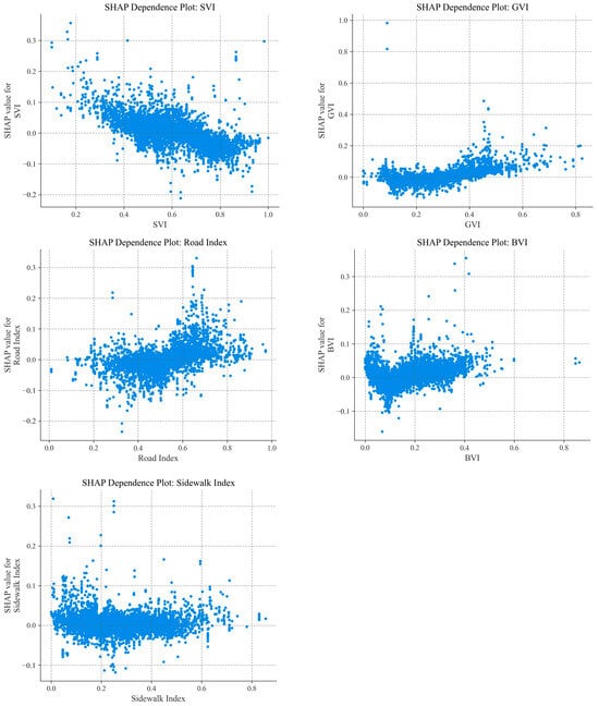 Urban streets serve as essential spaces for commercial activities and social interaction, yet the mechanisms through which their landscape elements influence consumption vitality remain insufficiently explored. Focusing on Lixia District, Jinan, China, this study integrates street-view image semantic segmentation with machine learning techniques to capture the nonlinear interactions between streetscape features and consumption vitality, thereby establishing an analytical framework for examining their associations. The results show that: (1) pedestrian-friendly facilities are significantly associated with higher street-level consumption vitality, with benches and streetlights showing marked effects once their visual proportions exceed 10% and 12%, respectively; (2) the visual proportion of parking space becomes positively associated with consumption vitality when exceeding 0.15, whereas carriageway proportion shows an overall negative association; (3) the marginal effect of advertising density gradually diminishes, with billboard visibility ratios above 25% exhibiting saturated impacts; (4) when green-view visibility exceeds 30%, consumption vitality increases substantially, peaking within the 35–40% range; (5) potential synergies or trade-offs exist among streetscape elements—compared with individual factors, the combinations of benches and parking spaces, benches and billboards, as well as parking spaces and billboards, are associated with higher street-level consumption vitality. In contrast, combinations involving a larger sky view ratio are often linked to lower consumption vitality, suggesting that overly open spaces may weaken consumer attractiveness. This study not only extends the methodological toolkit for analyzing consumption vitality but also provides theoretical and practical guidance for the refined design and experiential construction of urban street environments.