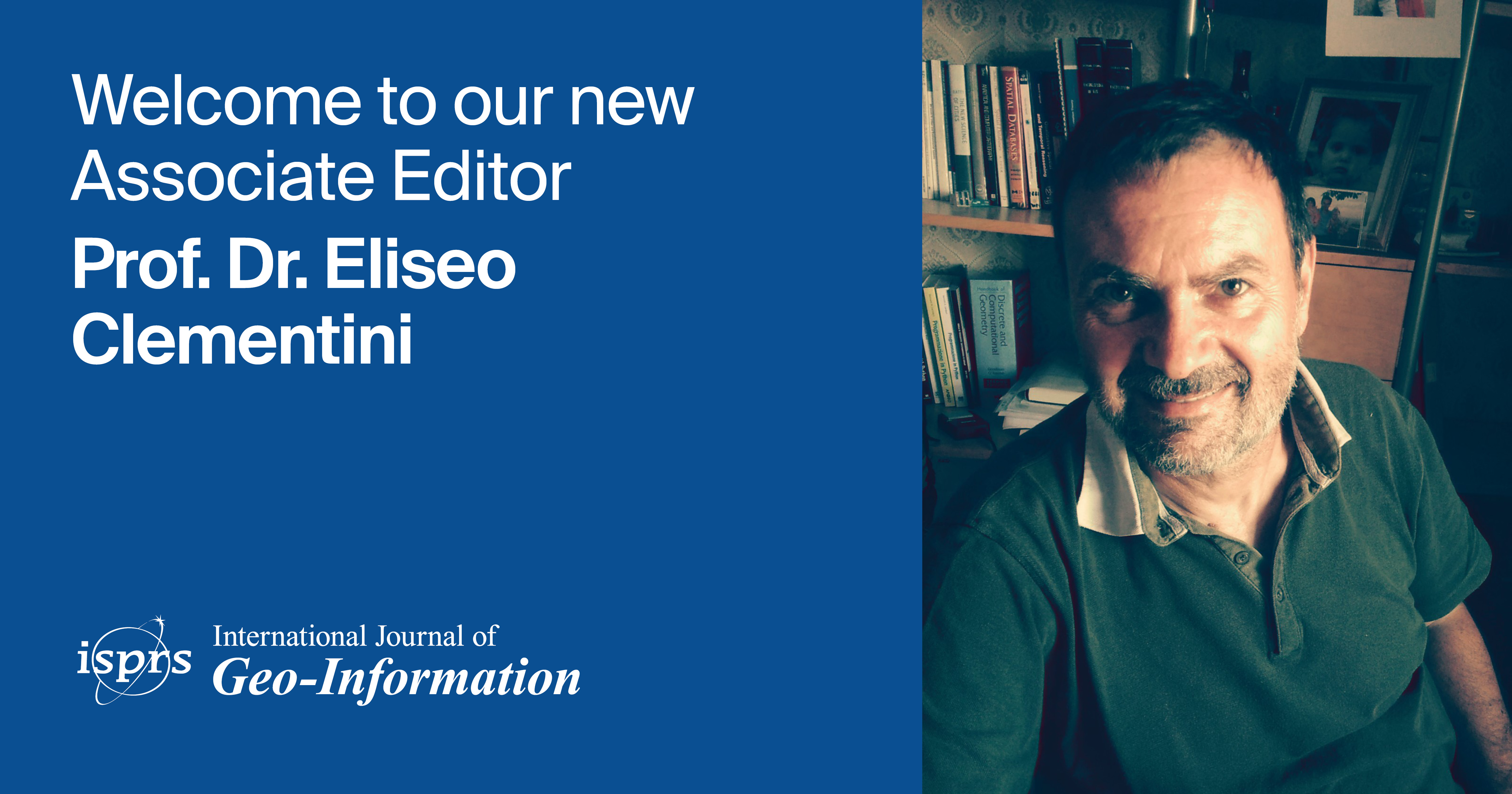We are honored that we have the opportunity to introduce Prof. Dr. Eliseo Clementini to our editorial team, and we are confident that, with the guidance of our Associate Editor, we will continue to improve the reputation and quality of IJGI.