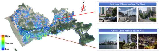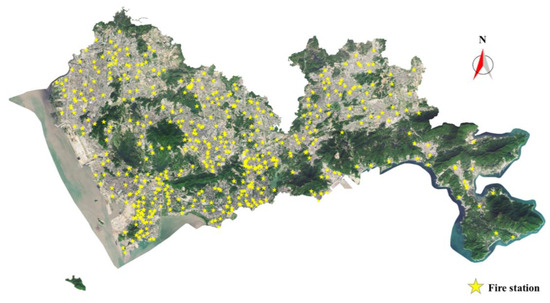 Underground parking garages in high-density megacities are high-risk environments where strong confinement and large fire loads pose severe safety threats. In this study, an evaluation model is proposed based on the entropy weight method combined with dynamic traffic conditions to determine the regional fire service accessibility index . Taking Shenzhen, a megacity in China, as the study area, POI data were used to identify 510 fire stations as supply points and 3378 underground parking garages as demand points, yielding 165,522 samples across 49 evaluation scenarios. The results show that the overall average travel time, distance, and velocity are 388.17 s, 2217.95 m, and 5.84 m/s. fluctuates between 0.572 and 0.813, demonstrating clear time-of-day differences. The overall average for all 49 scenarios is 0.697, corresponding to Grade “C”, representing the general level of regional fire service accessibility. It is recommended that additional fire resources be deployed during peak hours and that fire station layouts in peripheral areas be optimized to improve fire safety in underground parking garages.
