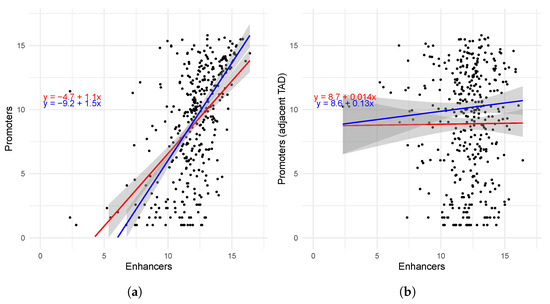 Gene expression from promoters is influenced by interactions with genomic enhancers located within the same topologically associating domain (TAD). Enhancer activity can be evaluated by measuring the transcriptional output of enhancer RNAs, and the CAGE methodology enables the simultaneous assessment of enhancer and
