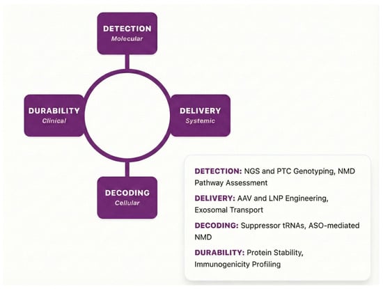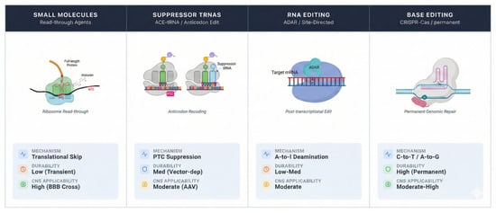 Nonsense mutations, responsible for ~11% of gene lesions causing human monogenic diseases, introduce premature termination codons (PTCs) that lead to truncated proteins and nonsense-mediated mRNA decay (NMD). In the central nervous system (CNS), these mutations drive severe, progressive neurological conditions such as spinal muscular atrophy, Rett syndrome, and Duchenne muscular dystrophy. Readthrough therapies—strategies to override PTCs and restore full-length protein expression—have evolved from early aminoglycosides to modern precision tools including suppressor tRNAs, RNA editing, and CRISPR-based platforms. Yet clinical translation remains hampered by inefficient CNS delivery, variable efficacy, and the absence of personalized stratification. In this review, we propose a translational framework—the 4 Ds of Readthrough Therapy—to systematically address these barriers. The framework dissects the pipeline into Detection (precision patient identification and biomarker profiling), Delivery (engineered vectors for CNS targeting), Decoding (context-aware molecular correction), and Durability (long-term safety and efficacy). By integrating advances in machine learning, nanocarriers, base editing, and adaptive trial designs, this roadmap provides a structured strategy to bridge the translational gap. We advocate that a synergistic, modality-tailored approach will transform nonsense suppression from palliative care to durable, precision-based cures for once-untreatable neurological disorders.