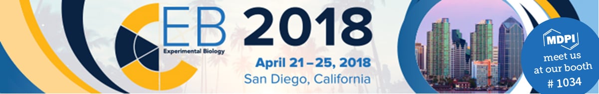 MDPI will be attending the Experimental Biology 2018 annual meeting in San Diego, CA, USA from 21 to 25 April 2018, representing the following open access journals: