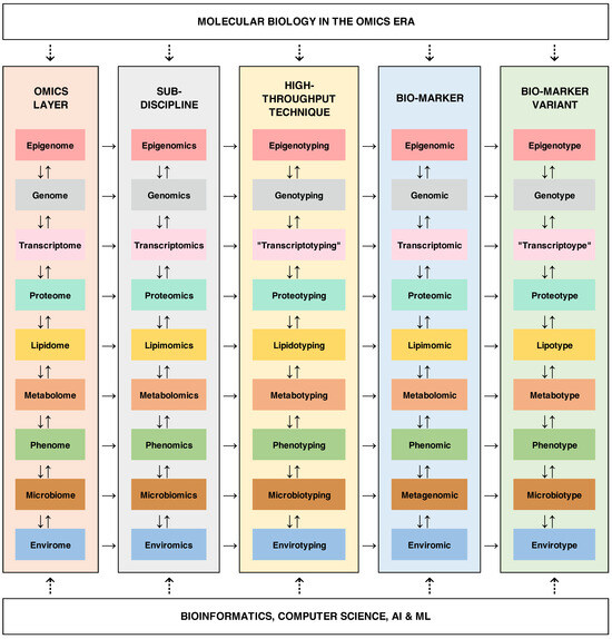 The current Special Issue entitled “Omics Technologies in Molecular Biology”, compiled by the International Journal of Molecular Sciences, focuses on the advancements and integration of omics technologies, key high-throughput tools that allow for comprehensive analysis of biological systems at various molecular and phenotypic levels. The Special Issue will cover genomics, transcriptomics, proteomics, metabolomics, lipidomics, phenomics, enviromics, and their intersection through big data analytics and machine learning. By harnessing these last-generation technologies, researchers will be able to uncover new insights into complex biological processes, systems biology, and disease mechanisms. Ultimately, the Special Issue will provide a platform for interdisciplinary collaboration, aiming to advance the frontiers of molecular biology by merging cutting-edge omics technologies with computational innovations. By merging interdisciplinary studies at the frontier of omics tools, the Special Issue’s main goal is to fill the following research gaps:
