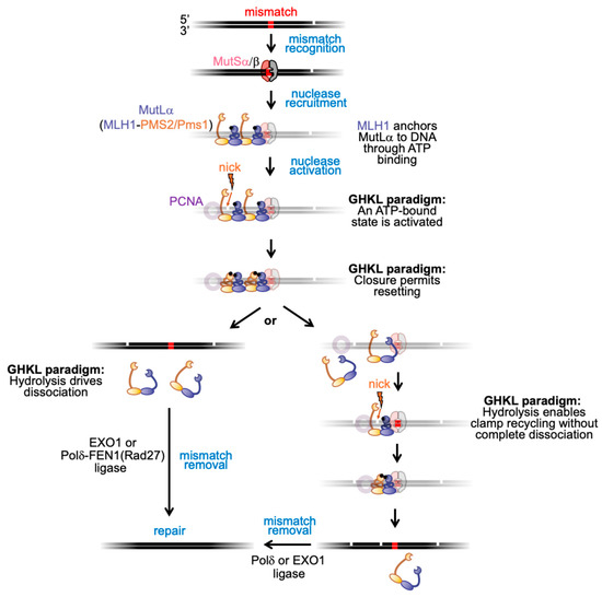 DNA replication, i.e., making a copy of a cell’s DNA, is a process in which approximately 3 billion base pairs of DNA in the genome must be properly copied when any of the cells divide. DNA replication is semiconservative, which means that each strand in the DNA double helix is a template for the synthesis of a complementary strand. Cells copy their DNA in a fast way, and they use multiple enzymes and proteins in this process, including DNA polymerase, DNA primase, DNA helicase, DNA ligase, and topoisomerase. DNA polymerase could make mistakes while adding nucleotides. Most of the mistakes are corrected during replication, but when it is not employed, the mismatch repair mechanism is implemented, which replaces the incorrect bases with the proper ones. Another type of repair is nucleotide excision repair, which removes incorrect bases along with a few bases on the 3′ and 5′ ends and replaces them by copying the template using DNA polymerase. Most of the mistakes are corrected; uncorrected bases result in mutations, which may cause multiple consequences, such as cancer.