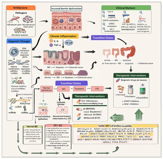The digestive system development and gastrointestinal tract cell functions are ruled and determined by a multifaceted regime of genetic and epigenetic regulators, influenced by the environment during development. There is a genetic component in many gastrointestinal (GI) diseases (e.g., inflammatory bowel disease—IBD) in which conditions are inherited, and “marked” with epigenetic “signatures” under a given environment. Importantly, among the environmental challenges, the significant role of microbial intestine flora has been acknowledged in all aspects of pathobiology of the GI tract, for signs of malfunction from benign disease to malignancy.