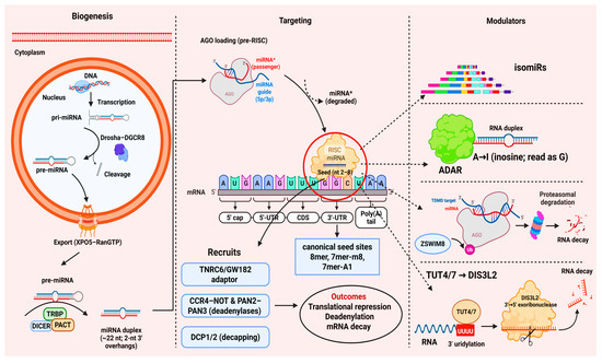 In cancer, miRNAs can act as oncogenes (oncomiRs) or tumor suppressors, depending on their target genes. For instance, miR-21 is frequently upregulated in various cancers and promotes tumor progression by targeting tumor suppressor genes, whereas miR-34a, a tumor suppressor, is often downregulated. This dual role makes miRNAs attractive candidates for both biomarkers and therapeutic targets.