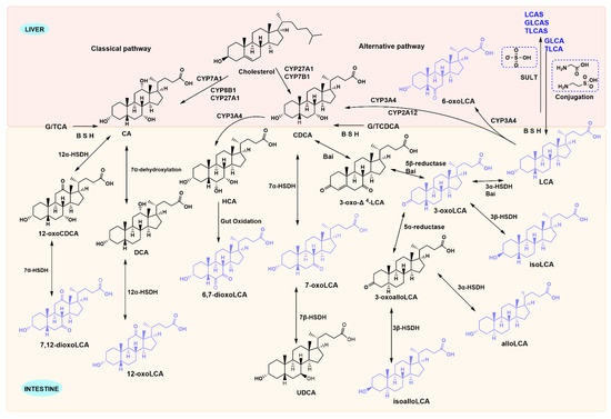 Secondary bile acids are generated from the metabolism of primary bile acids by intestinal flora and play important roles in lipid digestion, regulation of metabolic homeostasis, and intestinal-hepatic axis signaling. Recent studies indicate that lithocholic acid (LCA) and its derivatives (e.g., 3-oxoLCA and [...] Read more.