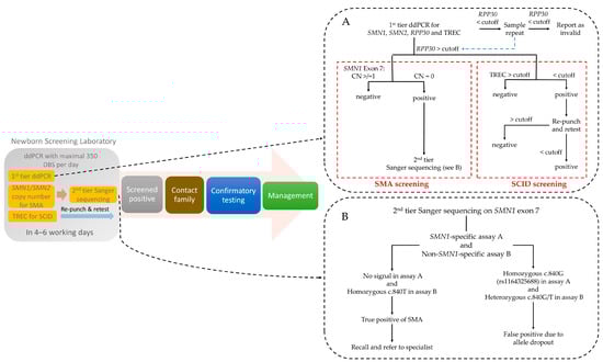 Newborn screening (NBS) for spinal muscular atrophy (SMA) and severe combined immunodeficiency (SCID) faces challenges. Accurate and precise SMN1 and SMN2 copy number determination, confirmed by two orthogonal methods, are vital for SMA prognostication and treatment. Single SMN1 copy detection also enables the