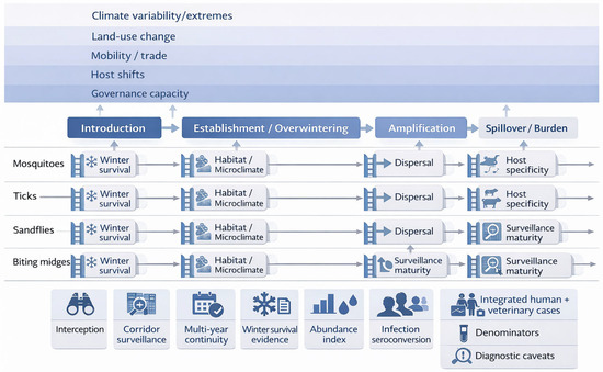 As the geographical distribution of pathogens transmitted by arthropods expands (mosquitoes, ticks, sandflies, fleas), populations are now at greater risk, with incidences of infections and fatalities increasing globally each year. Though robust vector control programs exist, many face challenges with regard to surveillance, insecticide resistance, and expanding distributions or invasive vector species. Understanding these vectors in the field can be useful in determining and implementing the appropriate mitigation strategies prior to or in case of an epidemic. This Special Issue aims to highlight a range of pathogen transmission systems and vectors, including the successes and challenges in surveillance and control. Submissions of original research and reviews are welcome. Research areas may include, but are not limited to, medical and veterinary entomology, applied vector surveillance and control, invasive vector species, modeling, novel technologies, and research-based programs.