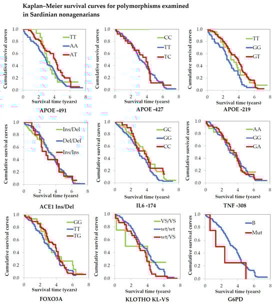 Background: Genetic variants associated with lifespan are typically identified by comparing long-lived individuals with younger populations. However, factors influencing the attainment of advanced age may differ from those affecting survival once extreme age has already been reached. The Sardinian “Longevity Blue Zone” (LBZ) represents a well-characterized longevity population in which this distinction can be investigated. Methods: We conducted a prospective survival study in 150 community-dwelling nonagenarians from the Sardinian LBZ with follow-up for more than seven years. Previously investigated candidate polymorphisms involved in aging-related pathways, including APOE, ACE1, IL6, TNFα, FOXO3A, KLOTHO, and G6PD, were reanalyzed using Kaplan–Meier curves and Cox proportional hazards models adjusted for age at recruitment, sex, and comorbidity burden (CIRS score). Results: Most polymorphisms showed no association with residual survival after age 90. In unadjusted analyses, carriers of the APOE ε4 allele displayed lower mortality than non-carriers (HR 0.49, 95% CI 0.26–0.93). However, after adjustment for age at recruitment, sex, and comorbidity (CIRS score), the association was attenuated and no longer statistically significant (HR 0.49, 95% CI 0.24–1.03). Conclusions: In this cohort of Sardinian nonagenarians, candidate longevity-associated polymorphisms did not significantly influence survival beyond age 90. The absence of an independent mortality disadvantage among APOE ε4 carriers indicates that the allele is compatible with survival into extreme age rather than conferring a survival advantage. These findings highlight the importance of distinguishing genetic determinants of longevity attainment from factors governing mortality dynamics at extreme ages.
