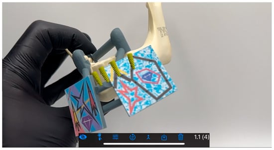 Purpose: The objective of this study was to evaluate and compare the precision of dental implant placements using augmented reality (AR)-iPhone (Apple, Cupertino, CA, USA) navigation technology versus conventional 3D-printed surgical guides. The accuracy was assessed by comparing the actual implant positions to their predefined three-dimensional (3D) locations in surgical plans using the Exocad software (Exocad, Dormstadt, Germany). Materials and Methods: Fourteen standardized mandibular models were divided into two groups: AR-guided (AR1-AR7) and 3D-printed surgical guide-assisted (Group 1–7). Each model received four implants in positions 35, 32, 42, and 45. Postoperative CBCT scans were aligned with the preoperative plans in the Exocad software to measure three-dimensional deviations, including total entry error, total apex error, and angular error. Statistical analysis was performed using the Statistica 12 software (StatSoft, Tulsa, OK, USA), incorporating Shapiro–Wilk normality tests, ANOVA, and post hoc LSD tests (where applicable). Results: The in vitro comparative experiment demonstrated AR group superior accuracy with mean deviations of 0.42 ± 0.12 mm at the entry point and 0.51 ± 0.18 mm at the apex, compared to 0.48 ± 0.15 mm and 0.58 ± 0.22 mm, respectively, in the 3D-printed guide group (p < 0.05). Angular deviation was significantly lower in the AR group (1.8° ± 0.6°) versus the guide group (2.1° ± 0.7°, p = 0.009). Descriptive statistics revealed the median apex error was 0.49 mm (IQR: 0.38–0.61) for AR versus 0.56 mm (IQR: 0.45–0.72) for guides. Conclusions: AR iPhone navigation technology achieved clinically acceptable accuracy compared to static 3D-printed guides, particularly in controlling angular deviations. While both methods produced clinically acceptable results, AR technology represents a significant advancement for precision-sensitive cases.