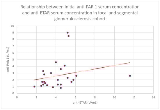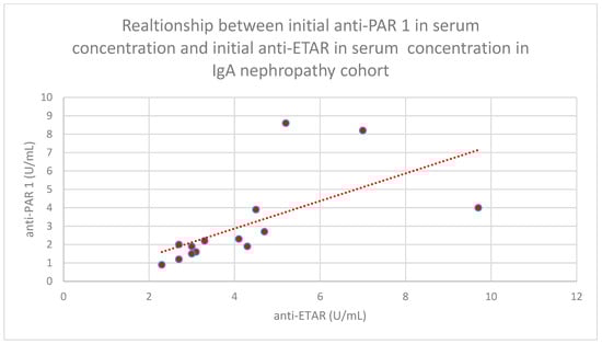 Background: PAR 1 (protease-activated receptor 1) and endothelin 1 are biomarkers that could be of significance in kidney diseases. Methods: We measured the plasma levels of PAR1 and endothelin 1 in patients with membranous nephropathy (n = 19), focal and segmental glomerulosclerosis (FSGS) (n = 30), systemic lupus erythematosus (SLE) (n = 22), IgA nephropathy (n = 16), mesangial proliferative (non-IgA) glomerulonephritis (n = 7), chronic kidney disease (CKD) (n = 27), and hemodialysis (n = 26), as well as a healthy control group (n = 22). Then, for two years, we tracked the patients’ clinical progress (creatinine, total protein, and albumin levels) and compared the outcomes with their initial PAR 1 and endothelin 1 levels. Moreover, we checked the correlations between PAR 1 and endothelin 1 and the results of anti-PAR1 and anti-ETAR (endothelin A receptor) evaluations. Results: Membranous nephropathy, FSGS, IgA nephropathy, CKD, and hemodialysis patients had higher PAR 1 levels than the control group. PAR 1 correlated with total protein, albumin in SLE, total protein in IgA nephropathy, and creatinine in CKD. Endothelin 1 correlated with albumin in membranous nephropathy, total protein, albumin, creatinine in FSGS, total protein in IgA nephropathy, total protein, and albumin in CKD. PAR 1 correlated with anti-PAR 1 in FSGS. Anti-ETAR correlated with anti-PAR 1 in membranous nephropathy, FSGS, and IgA nephropathy. Conclusions: PAR 1 levels are elevated in some kidney diseases compared to the healthy population. Both PAR 1 and endothelin 1 are supposed to be related to the clinical course of specific kidney diseases.