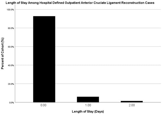 Background: Anterior cruciate ligament reconstruction (ACLR), one of the most frequently performed orthopedic procedures, has experienced rising demand and escalating costs, driving efforts to reduce expenses through shorter hospital stays and an increased shift toward outpatient settings. This study aims to evaluate how differing definitions of “outpatient” surgery influence the interpretation of outcomes following ACLR. Methods: ACS-NSQIP was queried for patients undergoing primary ACL reconstruction between 2014 and 2023. Patients ≥ 18 years with CPT code 29888 were included. Patients with missing hospital length of stay (LOS) data or a LOS > 2 days (≥99th percentile) were excluded. Two definitions of “outpatient” surgery were evaluated: hospital-defined outpatient (HDO) and same-day discharge (SDD, LOS = 0). Propensity score matching of baseline demographics and comorbidities was used to compare HDO and SDD cohorts to their respective inpatient counterparts. Primary outcomes analyzed included 30-day readmission, reoperation, and postoperative complications. Univariate and multivariate analyses were performed to compare risks of complications for HDO and SDD cohorts compared to their inpatient counterparts. Results: A total of 37,546 patients were included in this study, with 35,334 HDO (94.1%) and 34,801 (92.7%) SDD cases. 1021 (2.9%) of the 35,334 HDO patients had an inpatient hospital stay of at least 1 night. In propensity-matched cohorts, hospital-defined inpatient ACLR was associated with significantly greater risk of 30-day reoperation (odds ratio [OR] 3.167, 95% CI 1.267–7.915, p = 0.009) and superficial surgical site infection (SSI) (OR 5.0, 95% CI 1.712–14.604 p = 0.001), while HDO ACLR was associated with increased risk of deep vein thrombosis (DVT) (OR 0.333, 95% CI 0.121–0.916, p = 0.025). Compared to the propensity-matched SDD cohort, inpatient ACLR was significantly associated with greater rates of 30-day readmission (OR 1.988, 95% CI 1.088–3.630, p < 0.001), reoperation (OR 3.222, 95% CI 1.528–6.794, p = 0.001), and superficial SSI (OR 3.286, 95% CI 1.412–7.644, p = 0.003). Conclusions: This study found differences in readmission and deep vein thrombosis between HDO and SDD cohorts when compared to inpatient ACLR. A standardized definition of outpatient surgery should be created to clearly distinguish same-day discharge from other outpatient categories, considering discharge timing and patient monitoring practices.