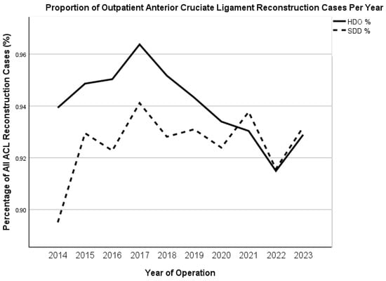Background: Anterior cruciate ligament reconstruction (ACLR), one of the most frequently performed orthopedic procedures, has experienced rising demand and escalating costs, driving efforts to reduce expenses through shorter hospital stays and an increased shift toward outpatient settings. This study aims to evaluate how