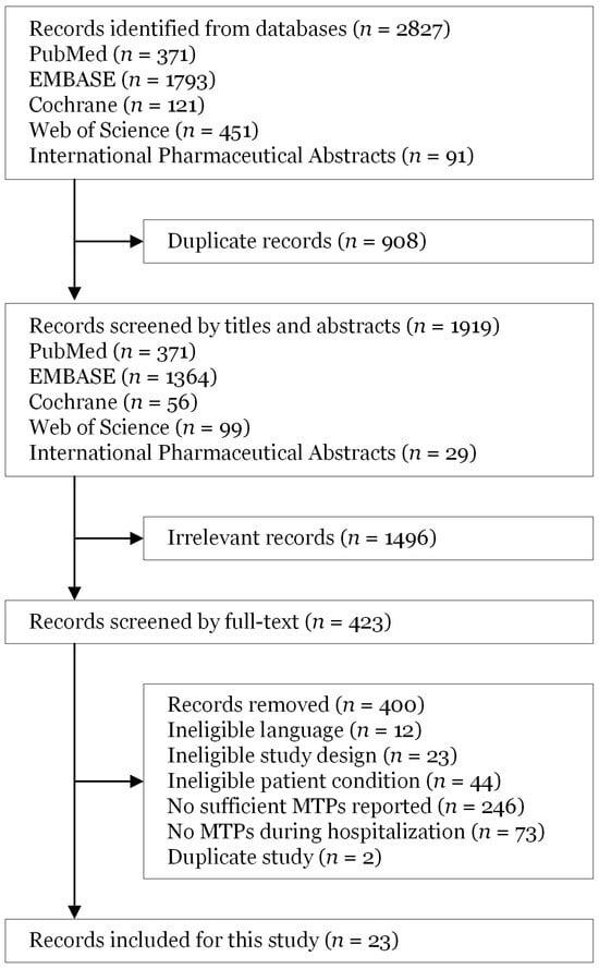 Background: This scoping review aimed to identify gaps in the literature regarding medication therapy problems (MTPs) among hospitalized adults with decreased kidney function. Specifically, it aimed to answer the following questions: (1) What types of MTPs have been reported? (2) What is