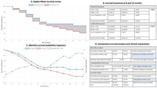Background and Aims: Severe alcohol-associated hepatitis (SAH) can trigger unstable decompensations in cirrhosis patients. They experience high rates of emergency department visits and hospitalization. We evaluated real-world clinical outcomes following palliative-faecal microbiota transplantation (pFMT) compared to best supportive care (BSC) in this critically