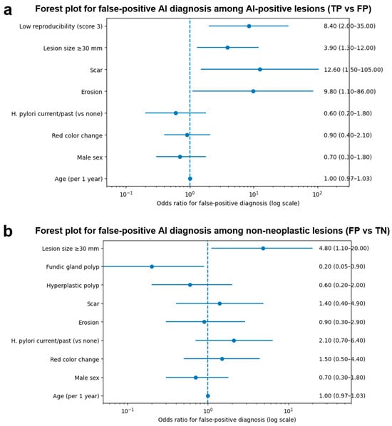 Background/Objectives: Artificial intelligence (AI)-assisted endoscopy has shown high sensitivity for early gastric cancer detection; however, false-positive diagnoses remain a clinical challenge. This study aimed to evaluate the real-world diagnostic performance of a commercially available AI system and to identify factors associated with