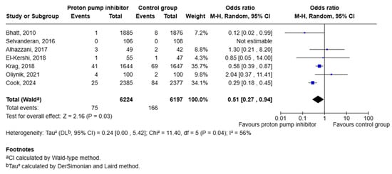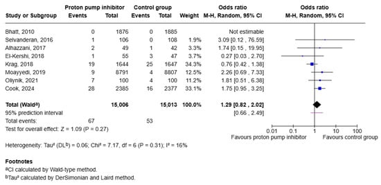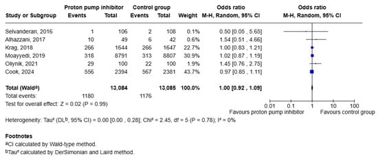 Background: Proton pump inhibitors (PPIs) are widely used to prevent acid-related complications, yet concerns persist about infectious harm. Observational studies have linked PPIs to Clostridioides difficile infection (CDI) and pneumonia whereas randomized controlled trials (RCTs) consistently show reductions in upper gastrointestinal bleeding. We therefore conducted a systematic review and meta-analysis restricted to randomized controlled trials to evaluate whether PPIs increase the risk of CDI, and to assess pneumonia and gastrointestinal bleeding to contextualize net clinical benefit. Methods: A comprehensive search of randomized controlled trials (RCTs) was conducted using several databases including PubMed, Embase, Cochrane Central Register of Controlled Trials (CENTRAL) and SCOPUS until July 2025. All published English-language RCTs that met the inclusion criteria were included. Random-effects models were utilized to calculate pooled odds ratios (ORs) with 95% confidence intervals. The risk of bias was assessed using the Cochrane Risk of Bias 2.0 Tool, and heterogeneity was quantified using I2 statistics. Analysis was performed using STATA version 18 and RevMan 5.3. Results: Across eight RCTs (n = 30,019), PPIs did not increase C. difficile infection versus placebo (OR 1.29, 95% CI 0.82–2.02; p = 0.27; I2 = 16%) with leave-one-out (LOO) analyses showing stable estimates. In six trials reporting pneumonia, there was no significant difference between groups (OR 1.00, 95% CI 0.92–1.09; p = 0.99; I2 = 0%). For clinically important upper GI bleeding (seven trials), PPIs were associated with a statistically significant lower risk when compared to placebo (OR 0.51, 95% CI 0.27–0.94; p = 0.03; I2 = 56%). Conclusions: Across randomized trials with follow-up ranging from 30 days to 3 years, PPI prophylaxis significantly reduced upper gastrointestinal bleeding without increasing the risk of CDI or pneumonia. These findings support the use of PPIs for prophylaxis when clinically indicated, while recognizing that larger trials are needed to better assess rare adverse events.