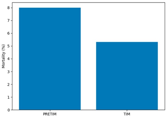 Background/Objectives: Inpatient clinical deterioration is a major contributor to adverse hospital outcomes, such as unplanned intensive care unit (ICU) admissions and death. Rapid response systems aim to address this challenge by enabling early identification and intervention in at-risk patients. This study evaluated the impact of implementing a mobile intensive care team on clinical outcomes in surgical patients. Methods: A retrospective observational cohort study was conducted in a tertiary care hospital, comparing two consecutive periods: a pre-intervention phase (PRETIM) and a post-intervention phase (TIM). The study included 17,156 adult surgical patients. The TIM consisted of a proactive outreach team composed of one attending intensivist and two resident physicians, focusing on post-ICU monitoring and early identification of clinical deterioration on surgical wards. The primary outcome was in-hospital mortality. Secondary outcomes included ICU readmission and length of stay. Multivariable logistic regression adjusted for age, sex and surgical section was performed, along with subgroup and sensitivity analyses excluding early non-modifiable deaths. Results: Baseline characteristics were comparable between groups. In-hospital mortality decreased significantly following implementation of the TIM (8.0% vs. 5.3%; p < 0.001), corresponding to an absolute risk reduction of 2.7% and a number needed to treat of 37. ICU readmission rates did not differ significantly between groups. Sensitivity analysis excluding early deaths confirmed the mortality reduction. Subgroup analysis demonstrated consistent effects across surgical specialties, with the largest reductions observed in neurosurgery and general surgery. Conclusions: The implementation of a mobile intensive care team was associated with a significant and clinically meaningful reduction in in-hospital mortality among surgical patients. The findings support the role of proactive post-ICU monitoring and early intervention strategies in improving patient outcomes in high-risk hospital populations.