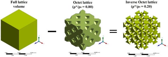 The deformation mechanisms of classic lattice topologies (e.g., Cubic, Diamond, Octet, and Double Pyramid lattices) and their specific density-dependent mechanical properties have already been thoroughly explored by the scientific community. This study details a novel approach to designing lattices by generating the topologies that correspond to the voids of these classic lattice designs. This is achieved by using a Boolean operation performed to create a solid topology from the original voided fraction. The resultant topologies are proposed to be named Inverse lattices. Static structural numerical analysis shows that this process may generate significant changes in the lattice deformation mechanism and stiffness. For this effect, elastic properties such as the Specific modulus and Apparent Poisson’s ratio were determined as a function of Specific density. Specifically, for Octet and Double Pyramid inverse lattice topologies, results show a reduction in stiffness by promoting a change to a bending deformation mechanism. However, the inverse Diamond inverse lattice topologies present a higher stiffness (i.e., specific modulus) relative to the original classic design. This new lattice model may be a promising design for future lattice applications.