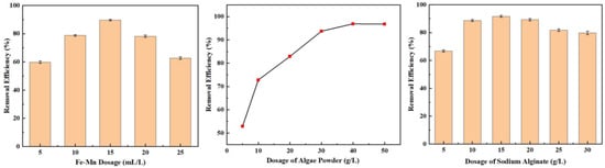 Using Microcystis aeruginosa as the raw material, the microalgae was modified through a potassium permanganate–ferrous sulfate treatment process to prepare Fe-Mn oxide-modified algal powder. Sodium alginate was then combined with this modified powder to create Fe-Mn-modified algal powder gel beads, which were employed