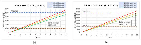 This research study investigates the use of composite materials to reduce the weight of heavy industrial vehicle chassis. A new Carbon Fibre Reinforced Polymer (CFRP) crossmember was developed to replicate the mechanical performance of the traditional steel component while achieving substantial weight reduction. A multi-step approach was adopted: analytical and finite-element analyses were performed on single crossmembers to assess bending and torsional stiffness. The CFRP design achieved increases of 6.8% in torsional stiffness and 5.0% in bending stiffness, with a 68.1% weight reduction. After confirming stiffness equivalence, full chassis simulations were carried out to evaluate global performance. The steel model reproduced experimental results with a relative error of 1.13%, while the CFRP configuration enhanced overall torsional stiffness by 7.8%. Extending these results to all crossmembers, the initial cost increase of the CFRP solution could be recovered within about 2 years for the diesel scenario and 3.5 years for the electric one. Environmental benefits were also quantified, with annual CO2 reductions of 708.4 kg and 298.6 kg, and cost savings of up to 463.3 EUR/year and 299.8 EUR/year, respectively.