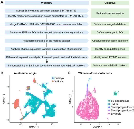 Erythro-myeloid progenitors (EMPs) originate from the haemogenic endothelium in the yolk sac via an endothelial-to-haematopoietic transition (EHT) to generate blood and immune cells that support embryo development. Yet, the transitory nature of EHT and the limited availability of molecular markers have constrained our