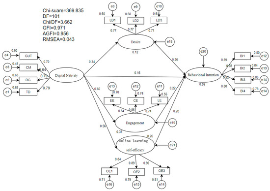 Against the backdrop of rapid technological development, informal English learning has become increasingly prominent in language education, particularly among digital natives. However, limited research has examined how digital nativity influences learners’ emotions and their intentions to engage in such learning. This study investigates the relationships among digital nativity, desire, engagement, online learning self-efficacy (OLSE), and learners’ intentions toward informal digital English learning (IDLE). Data were collected from 1458 English learners and analyzed using a structural modeling approach. The results show that desire, engagement, and online learning self-efficacy play significant mediating roles in the relationship between digital nativity and learning intention, while digital nativity also exerts a direct effect on intention. These findings highlight the central role of affective and motivational factors in shaping digital natives’ learning behavior and provide empirical support for the educational value of informal digital English learning in contemporary digital environments.