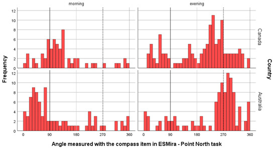Spatial cognition refers to the mental processing, perception, and interpretation of spatial information. It is often operationalized through self-assessments like sense of direction and mental rotation ability or field-based real-world tasks like pointing to a specific building and wayfinding; however, the former and latter entail unclear ecological validity and high participant burdens, respectively. Since the advent of smartphones, this repertoire has been extended substantially through the use of sensors or apps. This study used a large longitudinal experience sampling method (ESM) in two different countries (Canada and Australia, N = 217) and analyzed spatial cognition both conventionally (i.e., sense of direction and speeded mental rotation test) and through new techniques like self-rated and objectively assessed daily Google Maps usage, movement patterns throughout the 14-day assessment phase (using H3 tiles for geolocation), and a Point North task. The Point North task objectively assessed deviation from the celestial direction, North, by using smartphone compass sensors. In both countries, spatial orientation was found to be associated only with the Point North task, while no significant associations were found for daily Google Maps usage (subjectively and objectively measured) and moving distance throughout the assessment phase. Although further validation is required, the Point North task shows promise as an objective, ecologically valid, and easily employable smartphone-based measure for assessing spatial cognition in real-world contexts.