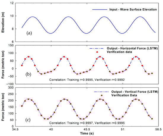 Artificial neural networks have been evaluated and compared for modeling extreme wave forces exerted on coastal bridges during hurricanes. Long Short-Term Memory (LSTM) is selected for deep learning neural networks. A feedforward neural network (FFNN) is employed to represent the shallow learning network for comparison purposes. The two case studies consist of an emerged bridge deck destroyed by Hurricane Ivan and a submerged bridge deck impaired in Hurricane Katrina. Datasets for model training and verifications consist of wave elevation and force time series resulting from previous validated numerical wave load modeling studies. Results indicate that both deep LSTM and shallow FFNNs are able to provide very good predictions of wave forces with correlation coefficients above 0.98 by comparing model simulations and data. Effects of training algorithms on network performance have been investigated. Among several training algorithms, the adaptive moment estimation (Adam) training optimizer leads to the best LSTM performance, while Levenberg–Marquardt (LM) optimized backpropagation is among the most effective training algorithms for FFNNs. In general, a shallow FFNN-LM network results in slightly higher correlation coefficients and lower error than those from an LSTM-Adam network. For sharp variation in nonlinear wave forces in the emerged bridge case study during Hurricane Ivan, FFNN-LM predictions of wave forces show better matching with the quick variations in nonlinear wave forces. FFNN-LM’s speed is approximately 4 times faster in model training but is about twice as slow in model verification and application than the LSTM-Adam network. Neural network simulations have shown substantially faster than CFD wave load modeling in our case studies.