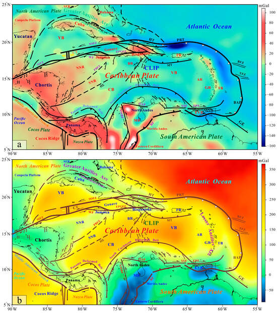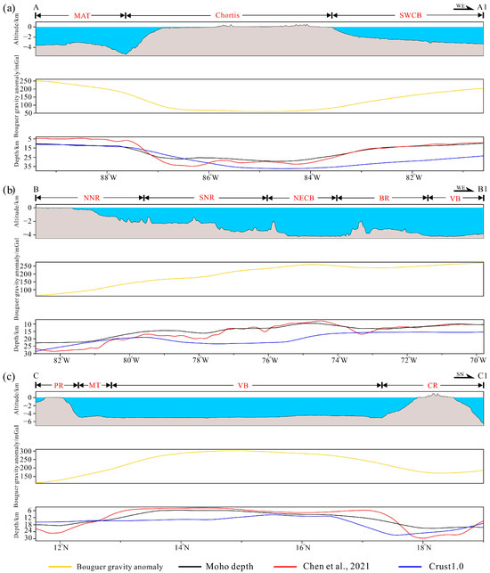 As a convergent zone of multiple plates, the Caribbean Sea and its adjacent areas have experienced a complex tectonic evolution process and are characterized by prominent microplate development. This region provides a natural laboratory for studying the formation mechanism of continental margins, the evolution process of ocean basins, and the tectonics of microplates. However, the crustal structure and microplate tectonics in this region remain unclear due to limitations of conventional planar gravity inversion methods, which neglect the Earth’s curvature in large-scale areas, as well as the uneven coverage of regional seismic networks. To precisely delineate the crustal structure and microplate boundaries in the Caribbean Sea region, this study employs a nonlinear gravity inversion method based on a spherical coordinate system. By utilizing GOCO06s satellite gravity data, ETOPO1 topographic data, and the CRUST1.0 crustal model, we performed inversion calculations for the Moho depth in the Caribbean Sea and its adjacent regions and systematically analyzed the crustal structure and microplate tectonic characteristics of the region. The results indicate that the gravity inversion method in the spherical coordinate system has good applicability in complex tectonic regions. The inversion results show that the Moho depth in the study area generally presents a spatial distribution pattern of “shallow in the central part and deep in the surrounding areas”. Among them, the Moho depth is the largest (>39 km) at the junction of the Northern Andes and the South American Plate, while it is relatively shallow (<6 km) in regions such as the Cayman Trough, the Colombian Basin, and the Venezuelan Basin. Based on the Moho undulation, gravity anomalies, and topographic features, this study divides the Caribbean Sea and its adjacent areas into 22 microplates and identifies three types of microplates, including oceanic, continental, and accretionary. Among them, there are 10 microplates with oceanic crust, 6 with continental crust, and 5 with accretionary crust, while the Northern Andes Microplate exhibits a mixed type. The crustal structure characteristics revealed in this study support the Pacific origin model of the Caribbean Plate, indicating that most of the plate is a component of the ancient Pacific Plate with standard oceanic crust properties. Locally, the Caribbean Large Igneous Province developed due to hotspot activity, and the subsequent eastward drift and tectonic wedging processes collectively shaped the complex modern microplate tectonic framework of this region. This study not only reveals the variation pattern of crustal thickness in the Caribbean Sea region but also provides new geophysical evidence for understanding the lithospheric structure and microplate evolution mechanism in the area.