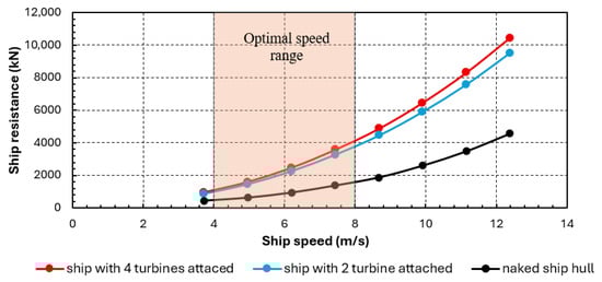 Wind power generation ships (WPG ships), which combine rigid sails for propulsion and underwater turbines for onboard power generation, have attracted increasing attention as a promising concept for utilizing renewable energy at sea. This study presents an integrated assessment of a WPG ship by combining towing-tank experiments, CFD simulations using ANSYS Fluent, and theoretical analysis to evaluate the coupled performance of sails, hull, and underwater turbines. First, sail thrust and bare-hull resistance were quantified to identify the effective operating-speed range under Beaufort 6–8 wind conditions, and the optimal number of rigid sails was determined. Based on a thrust–resistance balance at a representative rated operating point, two turbine configurations (two and four turbines) were preliminarily sized. The results show that ten rigid sails can provide near-maximum thrust without excessive aerodynamic interference, and the installation of turbines significantly reduces the feasible operating range compared to the bare-hull case. For the two-turbine configuration, a common effective ship-speed range of 6.58–8.0 m/s is obtained, whereas the four-turbine configuration is restricted to 6.58–7.44 m/s due to wake losses, additional appendage drag, and near-free-surface effects. The four-turbine configuration exhibits approximately 30% lower total power output than the two-turbine configuration. These findings demonstrate that an integrated, system-level evaluation is essential for WPG ship design and indicate that the two-turbine configuration offers a more favorable balance between power generation capability and operational flexibility.
