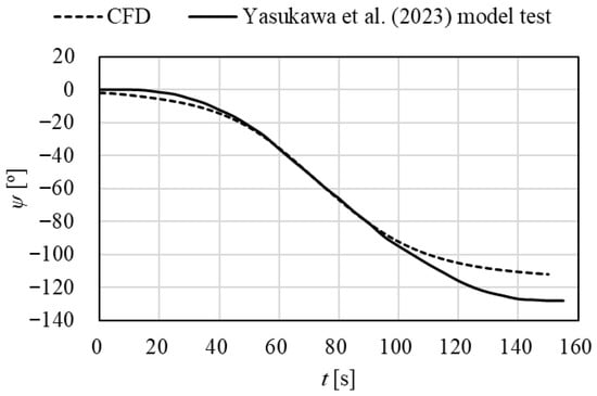 This study investigates the sailing performance and maneuverability of a fully wind-powered ship equipped with two rigid wing sails and a rudder, using Computational Fluid Dynamics (CFD). Unlike some conventional approaches that separately analyze above-water and underwater forces, this research employs a comprehensive CFD model to predict ship motion and performance under various wind directions and sail angles, from a stationary state to steady sailing. The accuracy of the CFD method is confirmed through comparison with experimental drift test data. Although the simulated drift data showed some discrepancies from the observed data due to the difficulty of accurately modeling the wind field in the simulation, the results indicate that the CFD method can effectively reproduce the ship motions observed in the experiments. Simulations reveal that the previously proposed L-shaped and T-shaped sail arrangements, which were designed to maximize thrust without considering maneuvering effects, remain effective even when ship motion is included. However, the results also show that conventional sail arrangements can achieve higher steady-state speeds due to reduced leeway-related resistance, while the L-shaped and T-shaped arrangements yield distinct steady-state leeway (drift) characteristics under heading control. These findings suggest that dynamically adjusting sail arrangements according to operational requirements may help manage the ship’s trajectory (lateral offset) and mitigate maneuvering difficulties, contributing to the practical application of fully wind-powered ships. The study provides quantitative insights into the relationship between sail arrangement, acceleration, and leeway/drift behavior, supporting the design of next-generation wind-powered ships.
