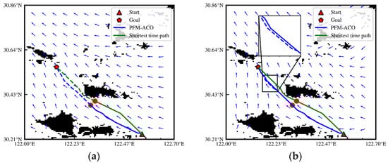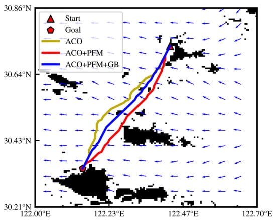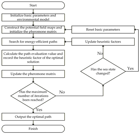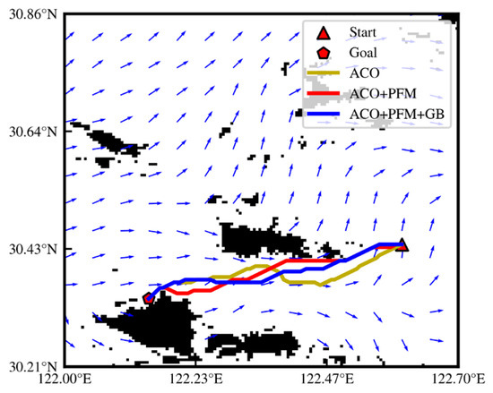 To address the problems of high energy consumption and excessive navigation time in autonomous tugboat operations during cross-regional missions, an Ant Colony Optimization algorithm integrated with Potential Field Maps (PFM-ACO) is proposed. The proposed method is capable of planning routes that satisfy navigation