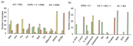 The occurrence and spatial distribution of polycyclic aromatic hydrocarbons (PAHs), polychlorinated biphenyls (PCBs), organochlorine pesticides (OCPs), fragrances, UV filters and photoinitiators were investigated in surface sediments of Nerbioi-Ibaizabal estuary between 2005 and 2013, in 2020. Samples were extracted by focused ultrasound solid–liquid extraction
