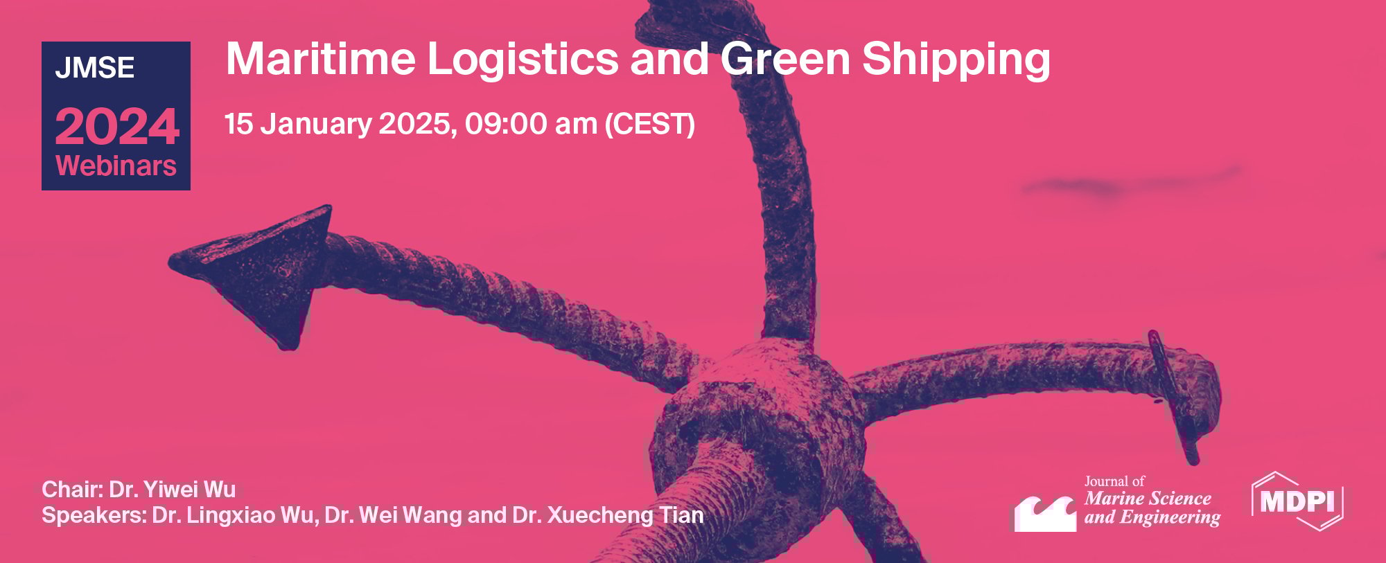 MDPI invites all esteemed experts to join the webinar of the Journal of Marine Science and Engineering (JMSE, ISSN: 2077-1312) titled “Maritime Logistics and Green Shipping”. This webinar will delve into the latest advancements in sustainable maritime operations, focusing on innovative solutions to address environmental regulations and operational inefficiencies. These topics are pivotal for revolutionizing the global shipping industry, balancing economic goals with environmental stewardship.