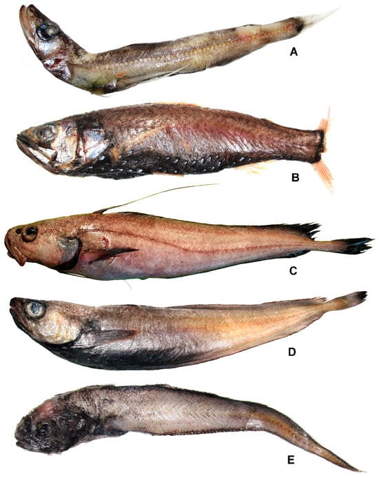 The results of the trawl survey of the research vessel Professor Kaganovsky over four seamounts (Annei, Jingu, Ojin, and Koko) of the Emperor Seamount Chain in 2019 are presented. Seventy-three species of pelagic and bottom-dwelling cartilaginous and bony fishes from 40 families were collected. Morphological diagnoses are presented for each species, with taxonomic comments for the poorly known taxa. The obtained collection includes 11 species new to science or of uncertain taxonomic position, 9 species newly reported for the Emperor Seamounts, and one new record Linophryne arborifera for the Pacific Ocean. For individual seamounts, 27 fish species were recorded for the first time at Annei, 12 species at Ojin, 4 species at Koko, and 2 species at Jingu Seamounts. Cytochrome c oxidase subunit I (COI) or cytochrome b (Cyt b) sequences were obtained for 36 species belonging to 22 families, including 13 species for which the barcode was flagged for the first time and the sequences made available. Cryptic diversity was revealed within the genera Cyclothone, Argyropelecus, and Chauliodus. According to our data, a boundary between the boreal and subtropical fish communities was found between Nintoku and Jingu Seamounts, with a transitional zone over Jingu and Ojin Seamounts at 37–39° N. However, the distribution of the subtropical species to the north may be limited by the increasing of summit depths in the northern subsection of the chain rather than any oceanographic or climatic barriers.