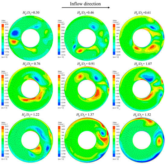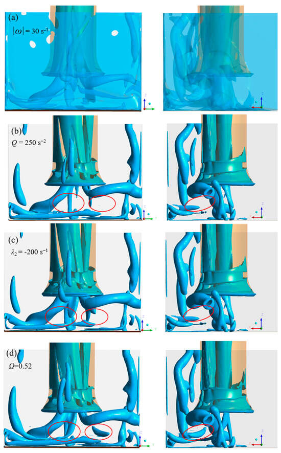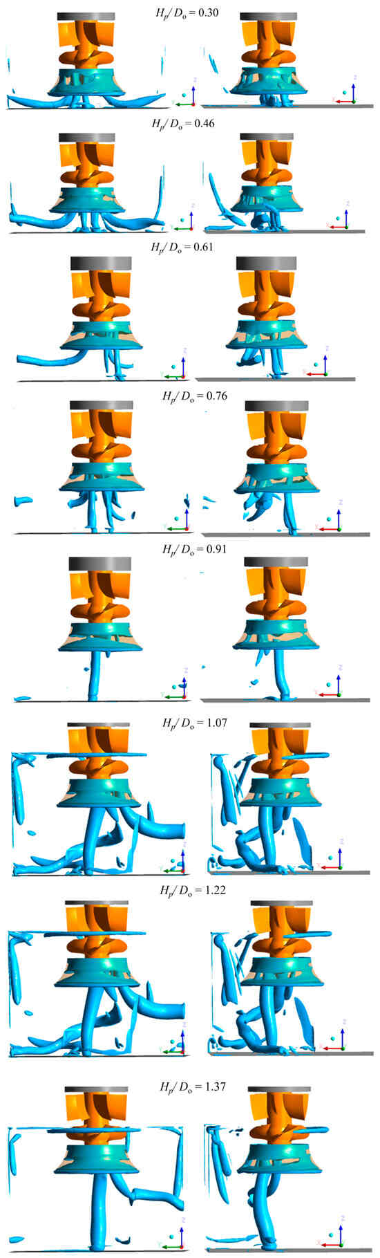 In coastal pumping stations, the intake sump geometry strongly affects flow uniformity, hydraulic loss, and vortex formation. This study establishes an Isight-based automated simulation and optimization framework for an axial-flow pump with a closed-type intake to clarify the influence of bellmouth diameter and clearance height on sump hydraulics. A Radial Basis Function surrogate model combined with the NonLinear Programming by Quadratic Lagrangian (NLPQL) was employed to minimize hydraulic loss and improve flow uniformity. The results show that hydraulic loss first decreases and then increases with bellmouth diameter, whereas velocity uniformity and the mean inflow angle exhibit nonlinear variations with clearance height. The optimal configuration increases efficiency by 3.82% and the velocity uniformity by 1.62% compared with the baseline. Helicity density and the Ω-criterion were used to identify vortex structures, revealing that small clearances intensify bottom and wall-attached vortices, whereas larger clearances promote symmetric inflow. An improved tangential-velocity method based on iso-vorticity contours effectively captured near-wall vortex dynamics. These findings provide theoretical support for achieving low head loss, stable inflow, and controlled vortex behavior in axial-flow pump intake systems.