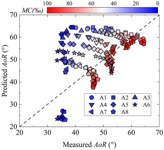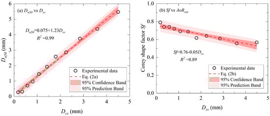The angle of repose is a fundamental parameter for assessing the stability of coral reefs. However, predictive models for this angle are currently lacking. In this study, a series of laboratory experiments were undertaken to investigate the angle of repose by varying moisture content, particle shape, and particle size. Based on our experimental data, variation in the angle of repose with moisture content is classified into five distinct zones. It is demonstrated that the range of moisture content for each zone varies with particle size. Coral sands of dendrite, flake, rod, and block particles have a descending order of angle of repose, as demonstrated for a sieve size of 4.5 mm. The angle of repose for dry, submerged, and steady coral sands exhibits a correlation with the nominal diameter of particle size. Finally, extended models are proposed for predicting the angle of repose of coral sands (R2 = 0.8, Dn50 = 0.317−5.470). To facilitate use of these models, a linear relationship between sieve particle size diameter, nominal particle size diameter, and Corey shape factor, allowing for conversion among these parameters, is established. This study thereby helps to enhance our understanding of how moisture content affects angle of repose and improve our ability to predict the angle for coral grains with intricate geometries.