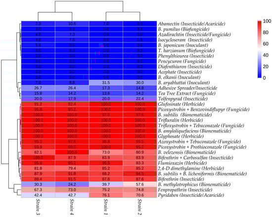 Trichoderma afroharzianum is increasingly used in commercial bioformulations for plant disease management in Brazil, yet information about its compatibility with agricultural inputs remains scarce. This study evaluated the in vitro interactions between four Brazilian strains of T. afroharzianum and 32 inputs from different