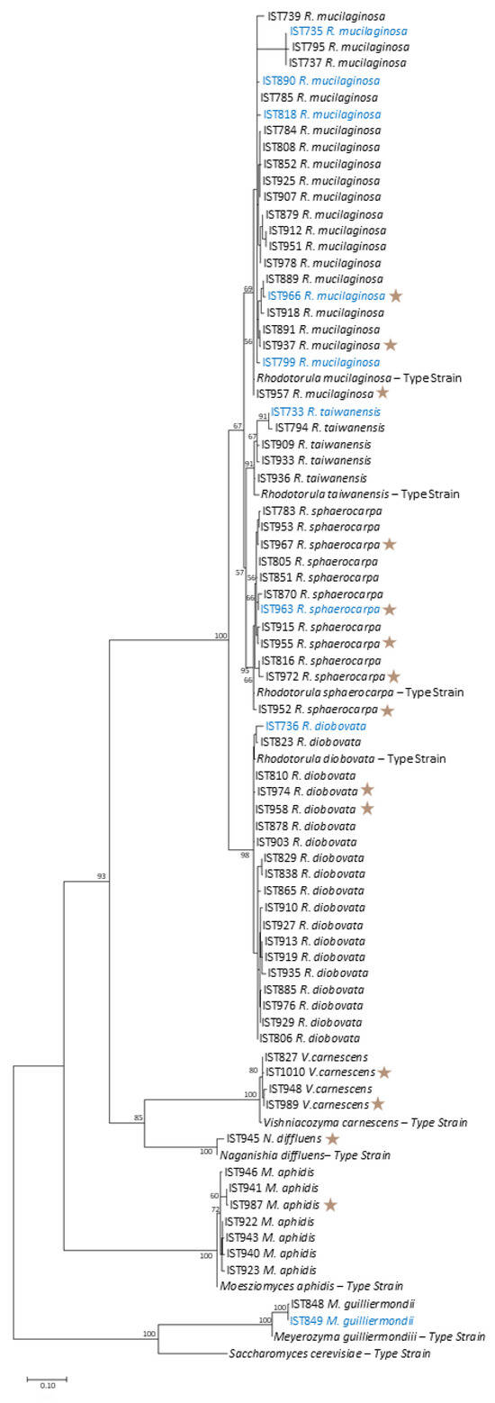 This study provides the first systematic characterization of culturable yeast diversity associated with large-scale cultivation of Tisochrysis lutea. This marine haptophyte is widely used in aquaculture for its high content of essential fatty acids, pigments, and other bioactive compounds. Culture sampling was